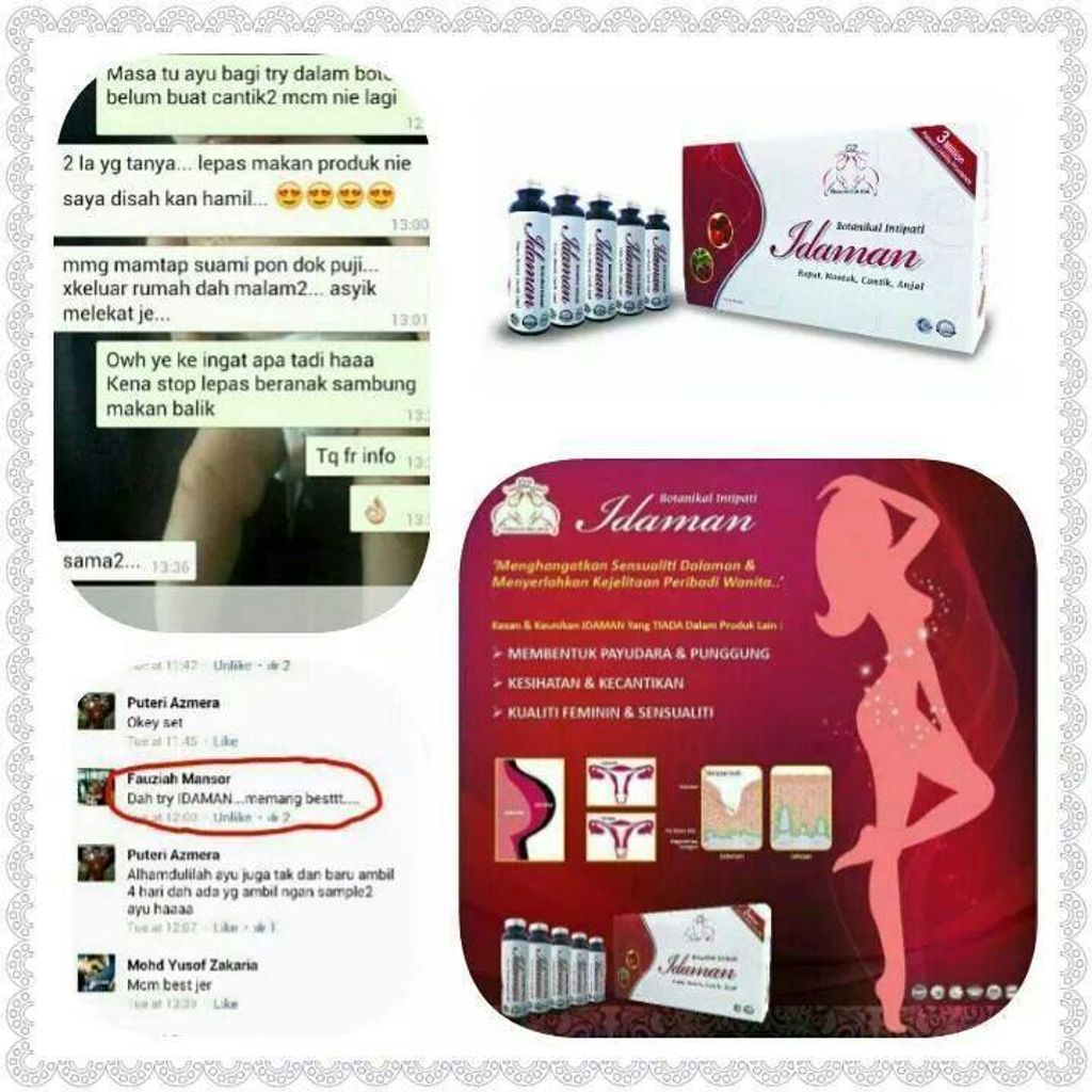 Pernahkah anda terfikir bahawa anda telah memberikan yang terbaik kepada pasangan anda????? IDAMAN didatangkan khas buat WANITA yang mahu memuaskan hati pasangan anda. Rumusan KHAS dari pakar nutrisi tempatan# KKM#HALAL#GMP | ||||||||||